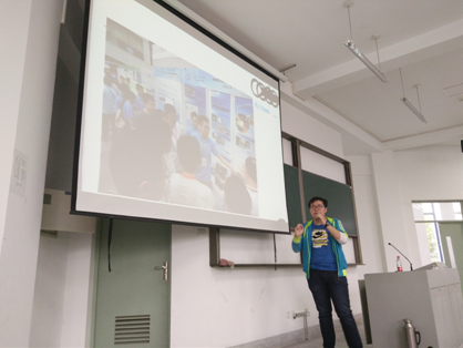 讲座开始,张程剀同学为同学们介绍节能减排大赛的主要情况,并介绍了他们备赛到参赛获奖过程,从想法的提出,制作过程,参赛流程到答辩获奖进行了细致的讲解。张程剀同学还插入了模型制作时的图片和测试时的视频,分析了制作过程中出现的问题以及改善后取得的成效。同时鼓励同学们有想法就去实践,放手去做,别怕失败。为了让大家对节能减排大赛有更详细的了解,张程剀同学展示了历年来优秀的参赛作品,介绍了作品的创意,同时提供了新的思路。在提问环节,张程剀同学对每个问题都进行了详尽的回答,解答了同学们的疑问。