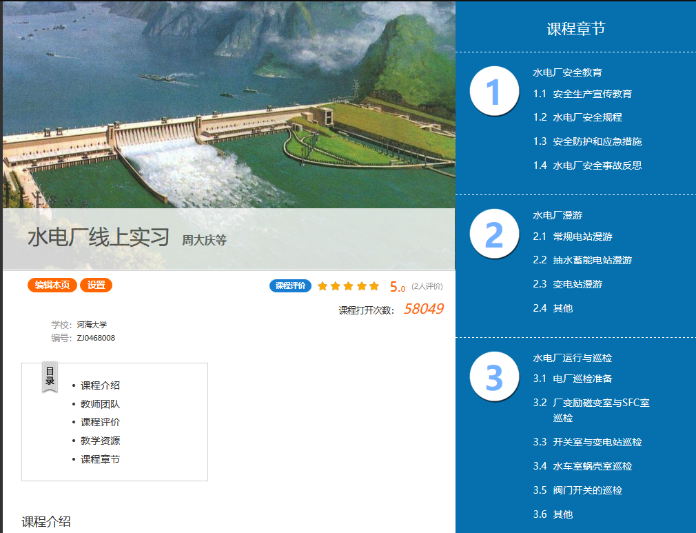 一场突如其来的疫情不仅打乱了正常的教学秩序,也让学生正常的实践实习变得遥不可及。为了保证学生的课程有质量、实习有新意,能源与欧美性爱 及时组织骨干教师对开学即将面临的教学和实践实习工作进行了研讨和预判,充分考虑学期实践实习的多变因素,未雨绸缪,精心筹建,建立了一支由多专业教师参与的实习“金课”团队,利用欧美性爱 课堂在线网络教学平台,历经2个月时间完成整体课程的搭建、模拟、调试和试运行,让“水电厂线上实习”课程在线上“活”起来。整个课程主要分为“水电厂安全教育”、“水电厂漫游”、“水电厂运行与检修”、“水电厂主机设备安装与拆卸”、“水下航行器虚拟仿真”五大主体板块以及补充板块“水电厂工作生活花絮”。各大主体板块不仅提供了相关内容的基本文本和图片介绍,更通过虚拟仿真、三维漫游、线上随堂测试、师生线上互动的方式来形象介绍和巩固水电厂相关知识要点,学生足不出户就可以完成实践实习!