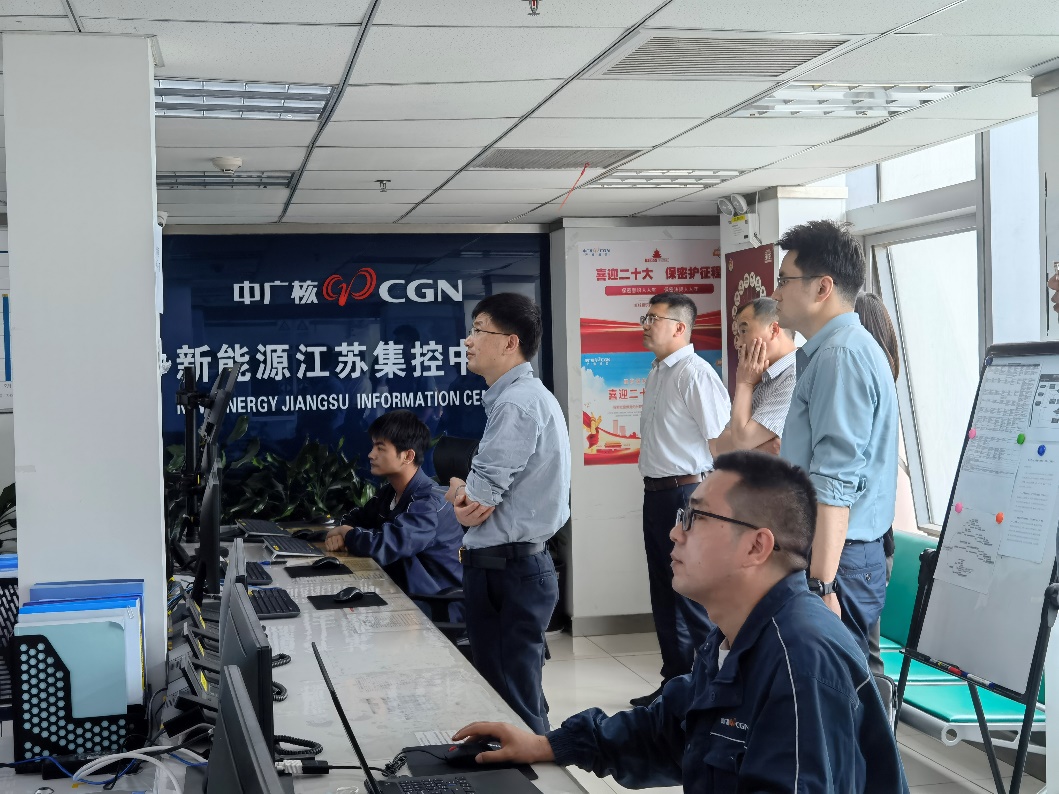 随后,学院一行在公司专门人员的带领下,参观了中广核新能源江苏集控中心,深入了解公司当前新能源项目建设情况和信息化监测与集中控制现状。