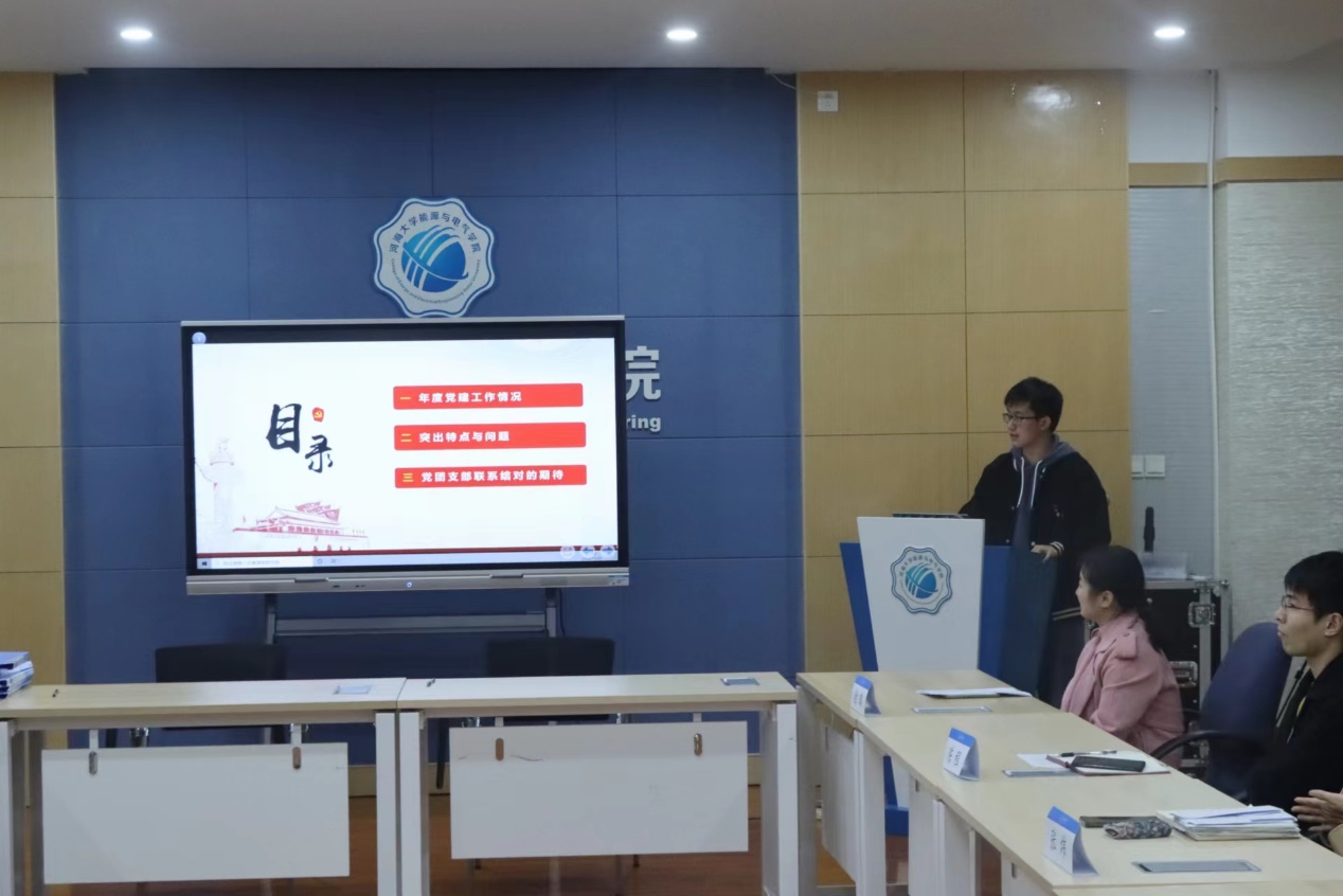 本科生第一党支部代表王希文,本科生第三党支部代表刘晨阳对今年党支部工作的组织生活会开展、党的二十大精神学习以及特色党日活动等方面进行介绍,对党团支部工作未来的创新改进提出建议与展望。