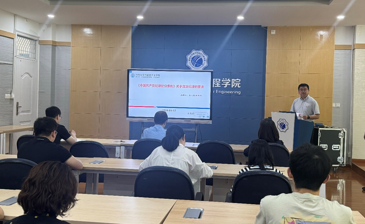5月17日,欧美性爱 举行《中国共产党纪律处分条例》(以下简称《条例》)专题辅导报告会,马克思主义学院副教授董大亮作辅导报告。学校党纪学习教育联络员刘丹平书记、学院领导班子成员、党委委员、党支部书记、师生党员代表等参加了报告会,院党委书记吴洪彪主持报告会。