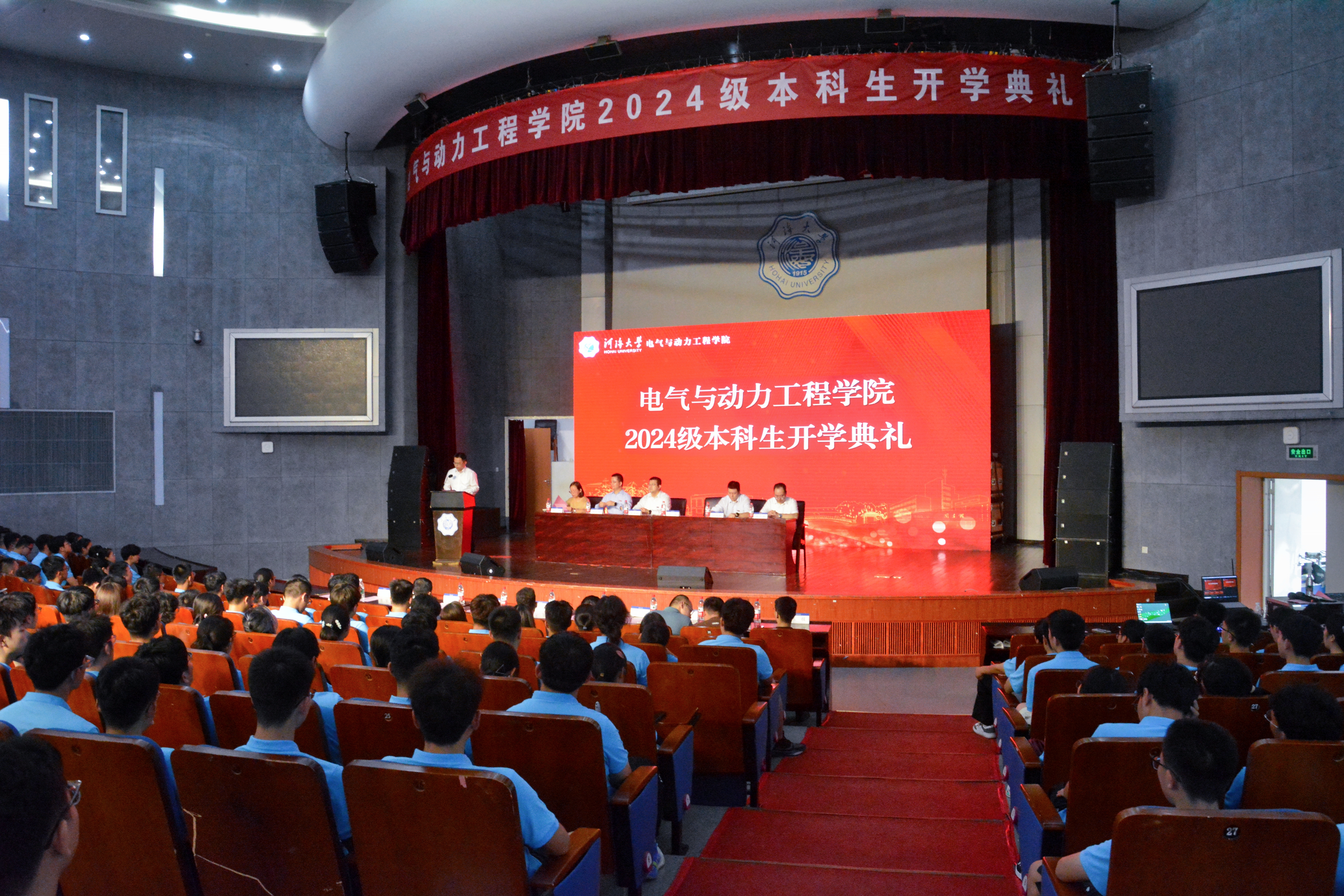 9月11日,欧美性爱 在江宁校区博学楼报告厅举行2024级本科生开学典礼。院党委书记吴洪彪,院长张犁,典礼嘉宾、电气院杰出校友、国网苏州市相城区供电分公司书记钱科军,副院长孙国强,副院长金宇清,院党委副书记张炜出席典礼。系主任、2024级本科生班导师、2024级辅导员和296名本科新生参加典礼。