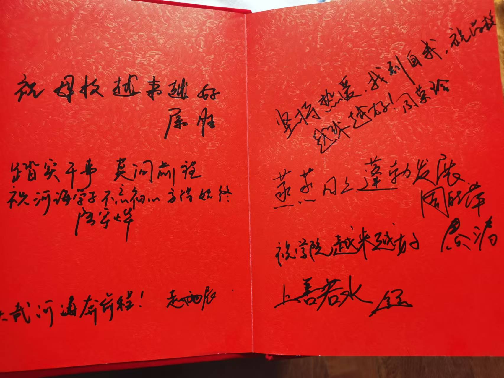 学院对校友们重返母校表示热烈欢迎,同时也对校友们长期以来对学校的支持和关注表示感谢,呼吁校友们常回家看看,祝愿校友们生活顺利,学校永远是坚强的后盾。老同学们欢聚一堂,回忆同学往事,讲述自己毕业后十年的人生经历,并在红色打卡册上留下自己对学校和同学们的祝福。曾经的班导师们也回忆起了当年的点点滴滴,向同学们表达了深切的关心和祝福。