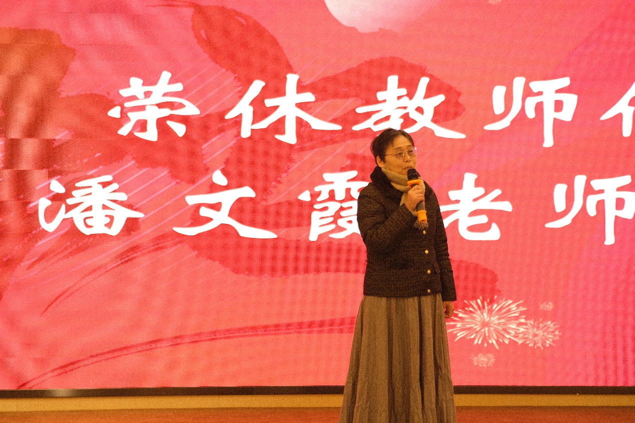 学院退休教师潘文霞老师回顾了荣休教师们退而不休、退岗不褪色的精神事迹,并对学院关心重视退休教职工表达由衷的感谢。她表示,全体退休教师将始终不断地为学院教育事业的发展发挥余热,以实际行动诠释河海教职工的教育奉献精神。