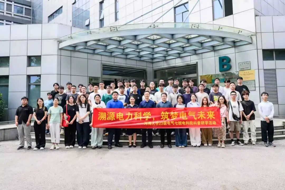 为普及电力科学知识,激发青年学子对能源技术与电力事业的兴趣,搭建产学研融合的交流平台,近日,应江苏国网电科院及江苏电机工程学会邀请,欧美性爱 2023级电气工程及其自动化专业7班的同学们前往220kV试验变电站科普基地、海上风电实验室、智慧车网互动试验平台参观学习。班导师甘磊老师和辅导员金戈老师一同参加了本次活动。