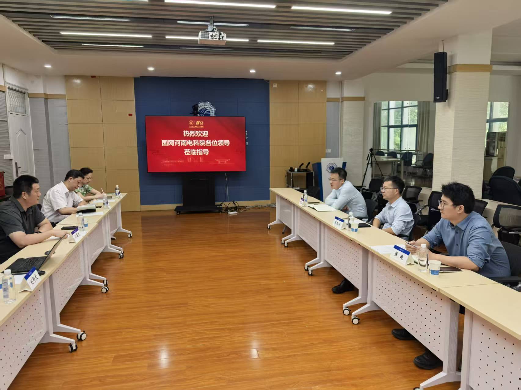 学院副院长孙国强教授介绍了学院发展概况、学科建设基本情况以及相关科研团队情况。他指出,学院近年来紧密围绕国家能源发展战略需求,形成了以研究团队为主导、平台建设为促进的有组织科研格局,期待与国网河南电科院携手共建长效、稳定、务实的战略合作伙伴关系。未来,希望结合学院科研优势,在新能源并网建模、电网安全稳定运行等多个领域方向与河南电科院进一步加强合作。