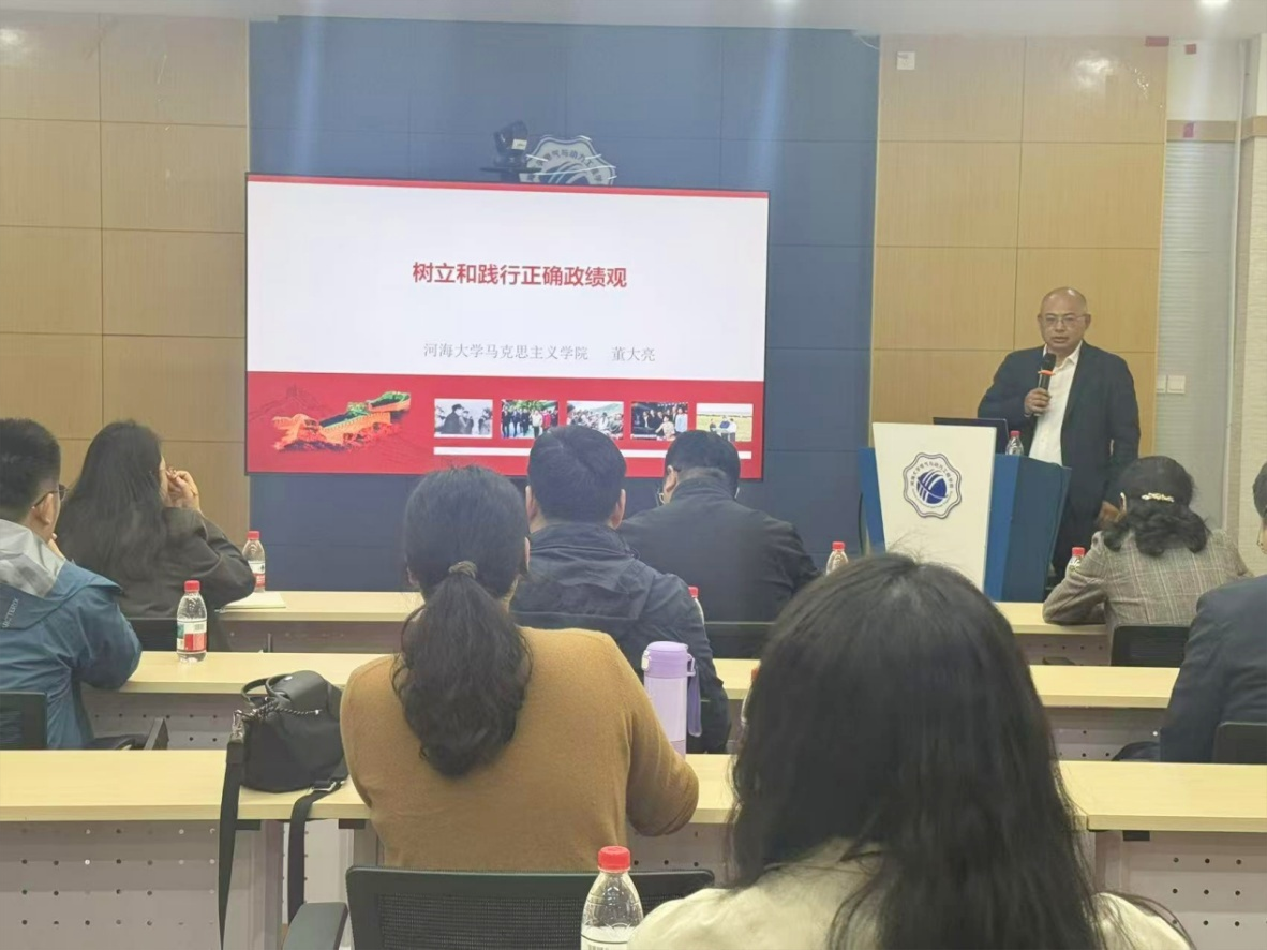 2026年4月10日,欧美性爱 、大禹学院联合开展“树立和践行正确政绩观”学习教育专题党课。党课邀请马克思主义学院董大亮老师主讲,学院领导班子成员、党支部书记、师生党员代表参加了学习。