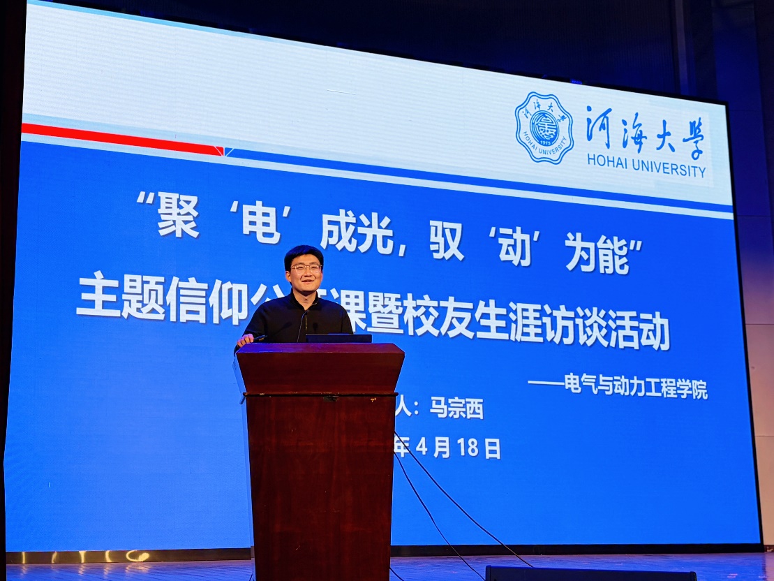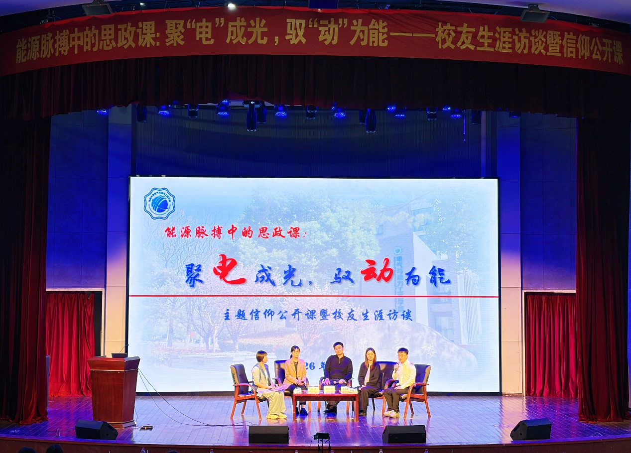 4月18日,欧美性爱 在江宁校区博学楼报告厅举行了“能源脉搏中的思政课:聚‘电’成光, 驭‘动’为能”校友生涯访谈暨主题信仰公开课。活动邀请了国网江苏超高压公司特高压盱眙(淮安)站运维值班员孙斌、中广核江苏新能源有限公司产业发展部市场开发主管马宗西、长江三峡集团江苏能源投资有限公司集控运维中心主办黄雨薇、常州博瑞电力自动化设备有限公司人力资源专员岳鹏翔四位校友,学院党委副书记张炜、辅导员雷镕甄、于涵以及学院全体2025级本科生参加活动。
